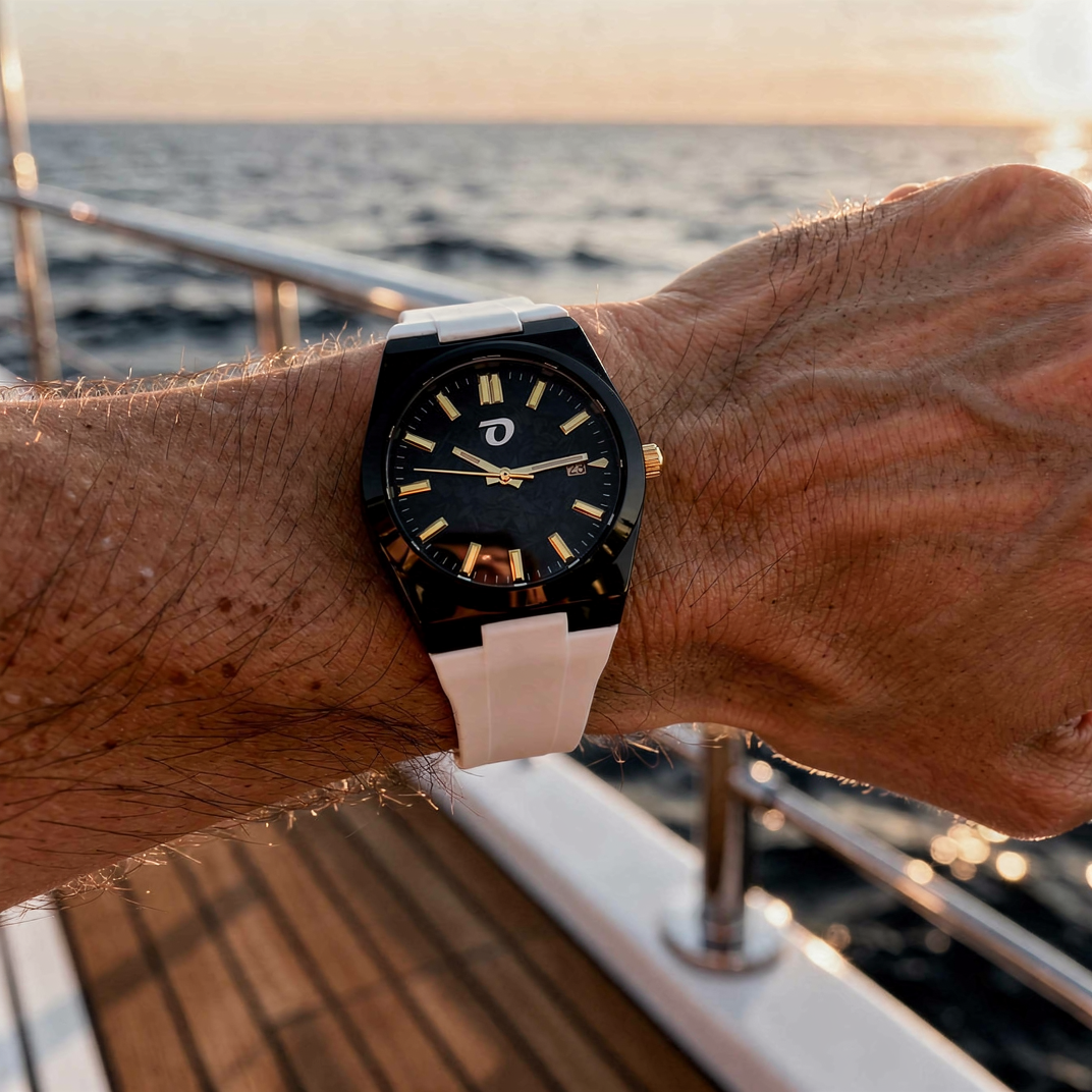La caja se compone de varias partes, carrura y bisel en carbono forjado y fonds en acero quirúrgico 316l pulido.